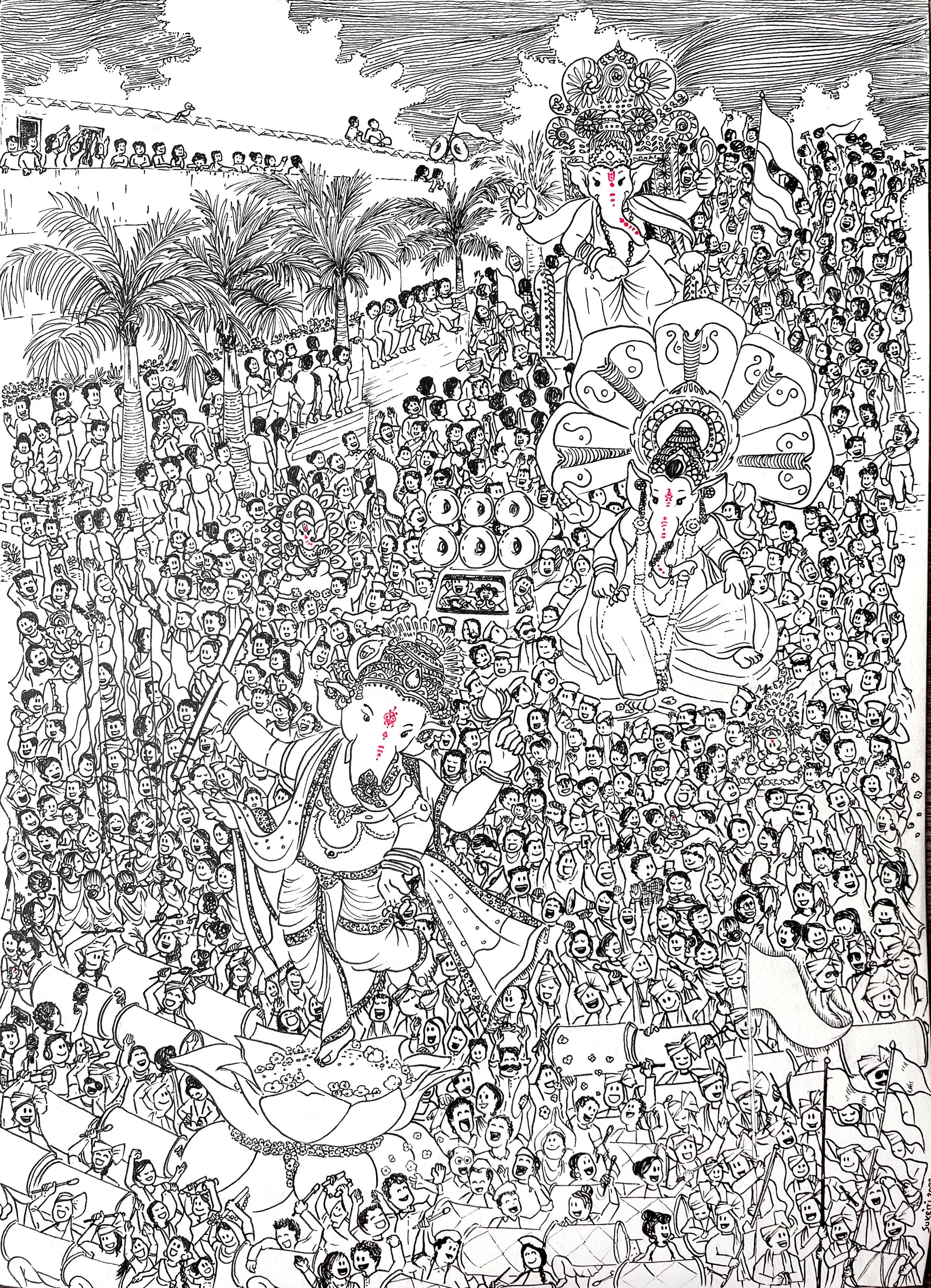 Medium: Hand-drawn in Black Ink